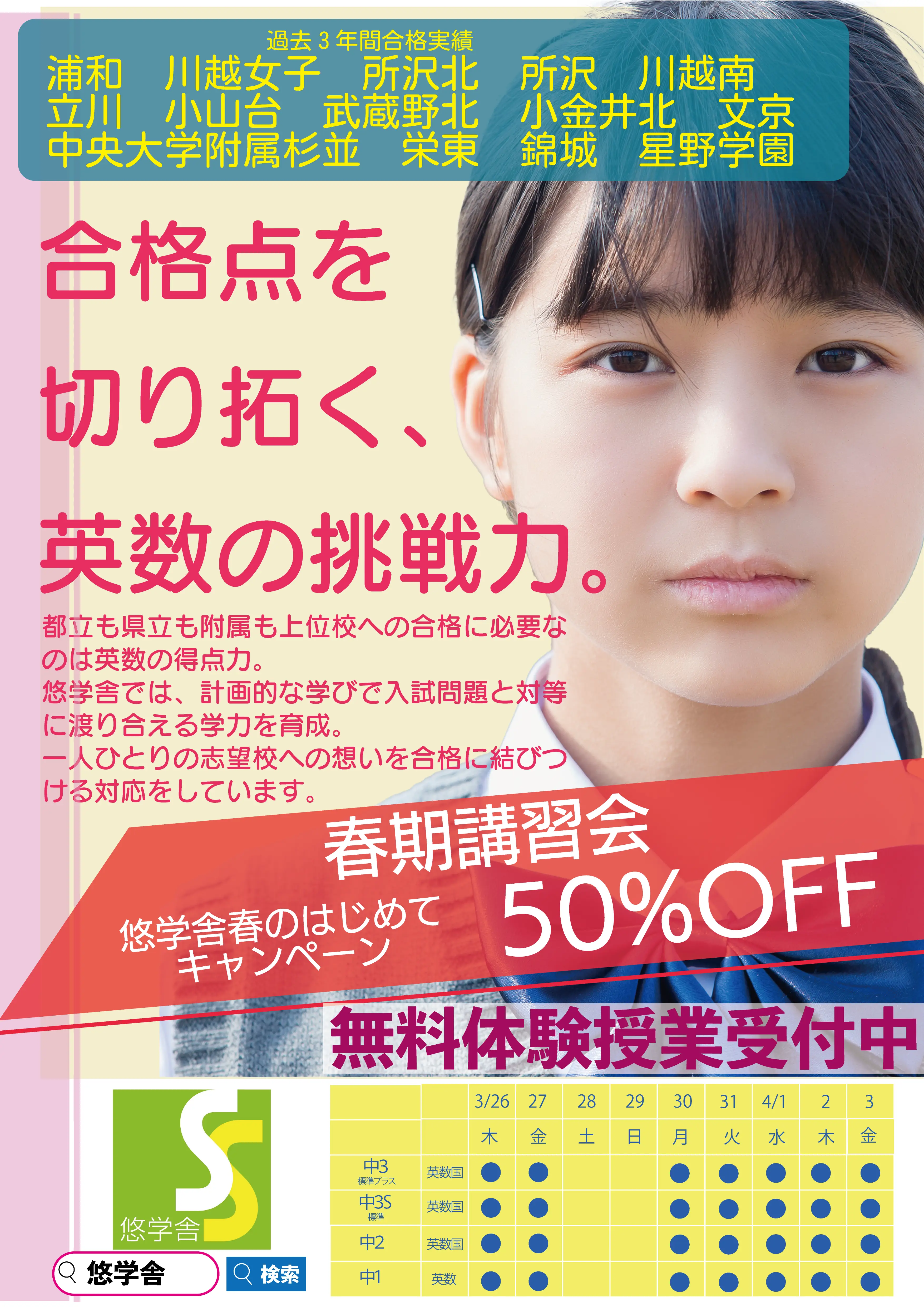 悠学舎 東久留米校 東久留米/新座エリア|春期講習会 高校受験